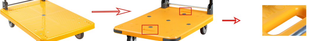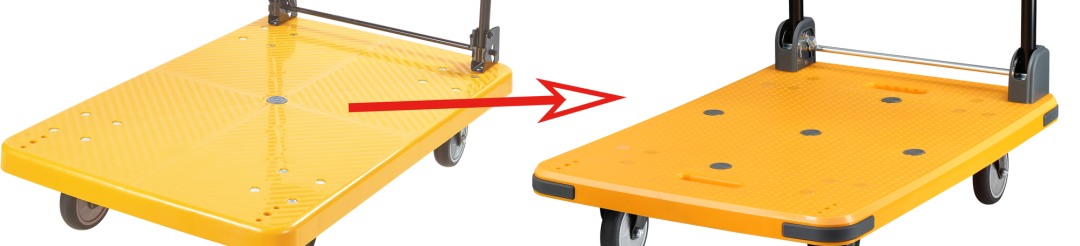 3.我們將之前的光麵(miàn)底板,升級為磨砂(shā)底板,同時設置防滑點,采用了蝕斜紋工藝,底板麵積(jī)不變,手推車防滑性和穩固性顯著(zhe)提高,使用者拉貨時也能(néng)安心。