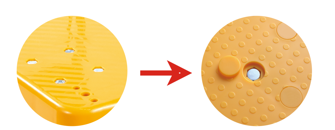 8.以及,設置(zhì)了螺絲(sī)蓋帽,將螺絲帽頭端保護起來,阻(zǔ)止了(le)異物、水漬侵蝕,延長了手推車使用壽命(mìng)。
