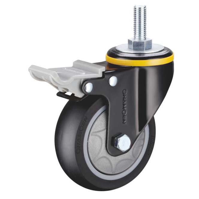 B6-4寸絲(sī)杆雙刹黑(hēi)色人造(zào)橡膠輪