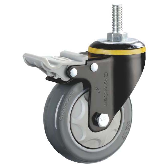 B9-5寸絲杆(gǎn)雙刹深灰(huī)色聚氨酯輪