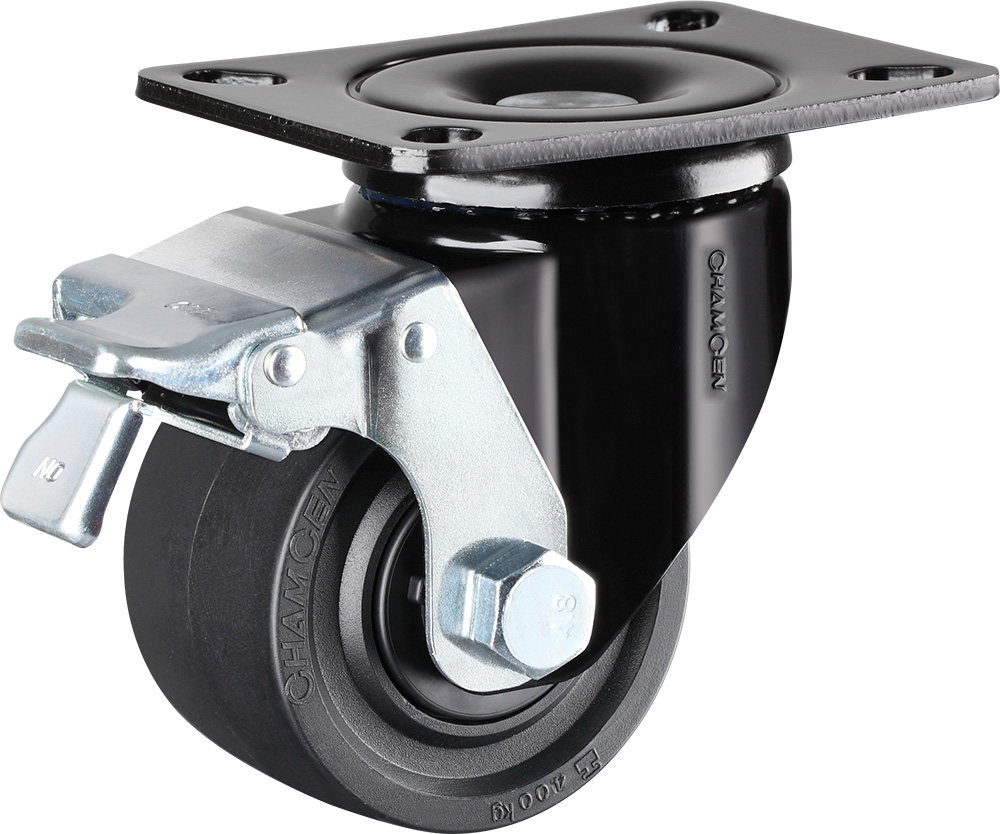 L1-2.5寸平底單刹黑色尼龍(lóng)輪