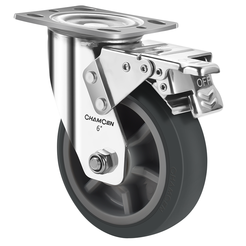 BC3-8寸(cùn)不鏽鋼雙刹灰(huī)色人造橡膠輪