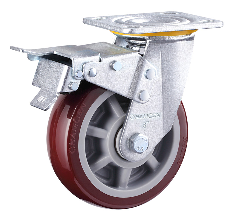 C4-8寸平底雙刹棗紅色聚氨酯輪(lún)