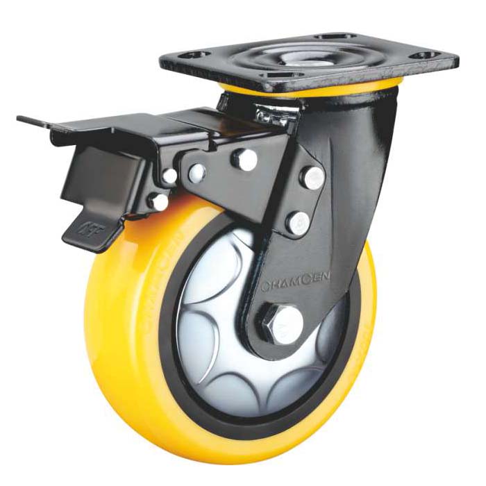 C5-5寸平底(dǐ)雙刹橙黃色聚氨酯(zhǐ)輪